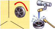 湯あか・水あかがたまったら、上部循環口、下部循環口に水道ホースを入れて強く水を流し込むと、水が上下に循環して汚れがとれます。