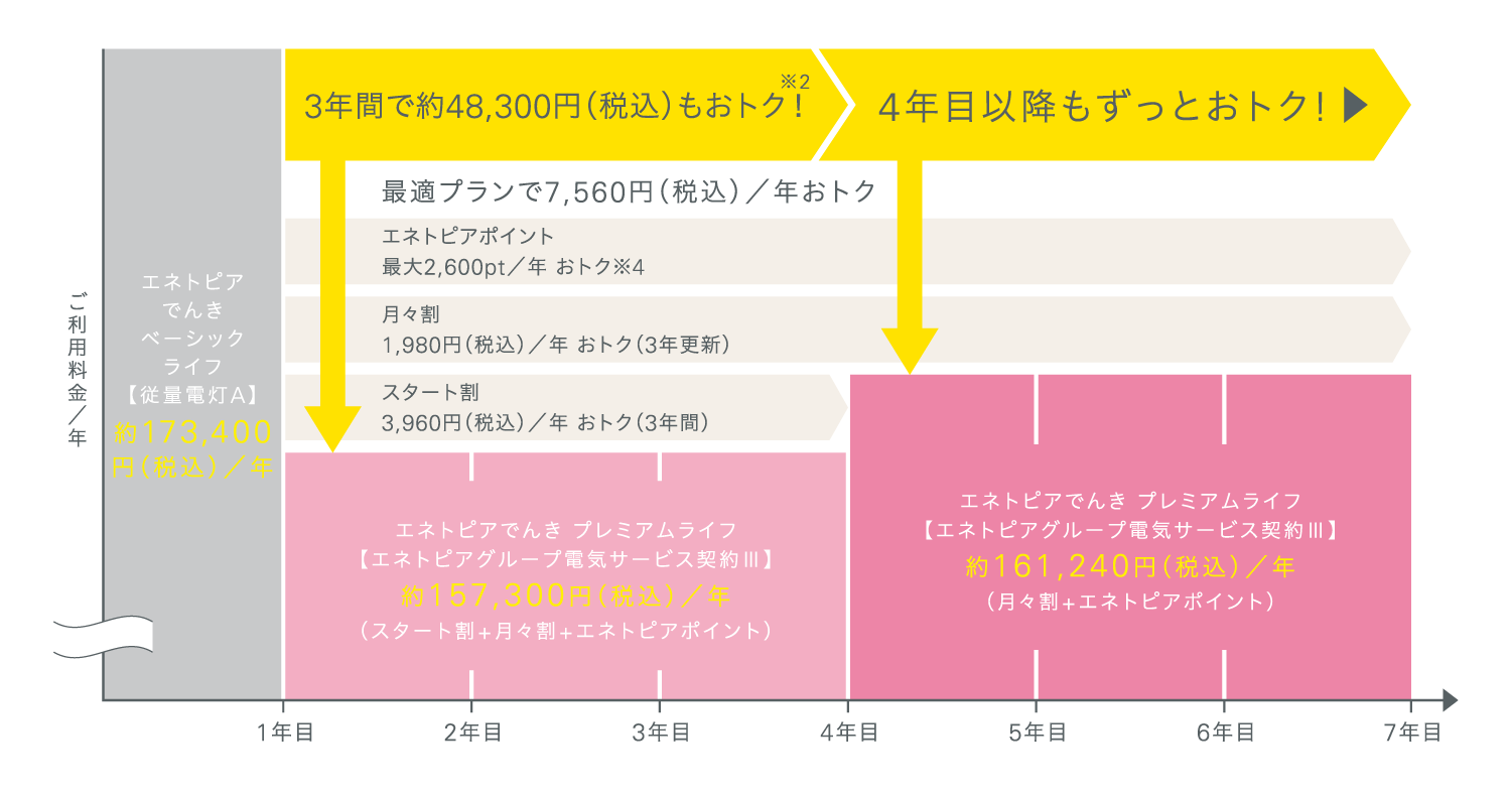 ※2 エネトピアでんき ベーシックライフは各種割引プランの対象外です。